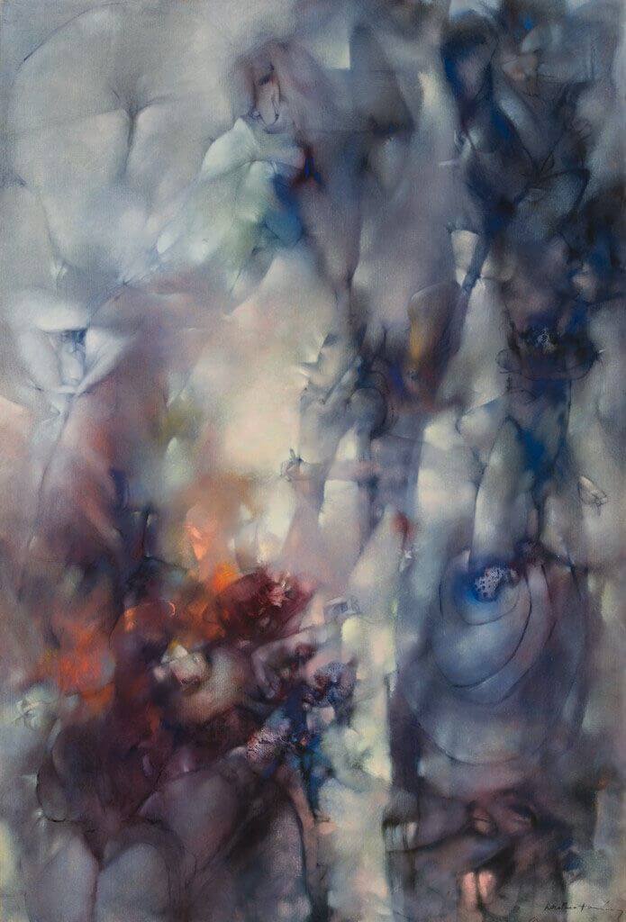 Not being a fan of abstract art, I have to say I was surprised to have liked this painting. The tentative human shapes of what I construe to be the “tourists” blend with nebula-like formations. Tanning’s masterful use of curved contours and colour shading gives the shapes in The Tourists of Prague III an incredible sense of depth, almost three-dimensional.